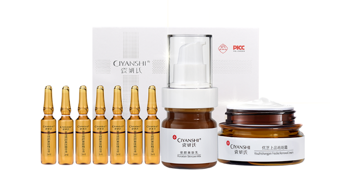 瓷妍氏瓷颜美肌祛斑套装,蕴含小分子烟酰胺,纯天然植物与烟酰胺结合,让肌肤美白明亮的功效,可以迅速渗入及保护肌肤免于自由基的侵害,帮助肌肤干扰黑色素生成,淡化黑色素加快皮肤代谢,令肌肤从内而外焕发耀人光彩,让肌肤享受不一样的焕白效果。