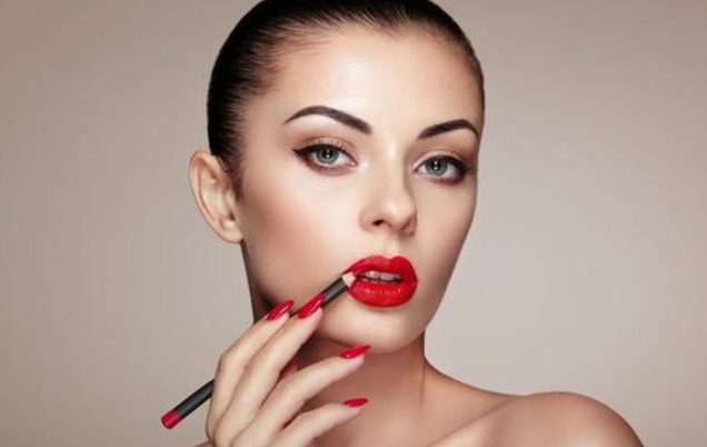 3. 手指由嘴唇下方向上滑动,就像是要把嘴角向上拉起,这能够防止唇周的松弛和细纹,以达到消除法令纹的效果。