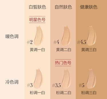 阿玛尼大师粉底液色号有四个,分别是 2 号 象牙白、3 号 白偏黄,4 号自然偏白和5号自然色,2#是象牙白,适合皮肤白的妹子,也是阿玛尼粉底液最白的色号,可以提亮局部的肤色,看上去也很自然。3#是白偏黄,比较适白黄的皮肤,虽然也白,但没有2#那么白,适合喜欢画韩妆的妹子,但不适合皮肤发黄或者发黑的妹子。