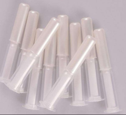 1、患者每晚睡前清洗外阴后,将给凝胶器前端的前盖取下,插入给凝胶器后端作为推杆;将装有凝胶的给凝胶器缓慢插入阴道深处,用食指推动助推杆,利用助推杆将抗菌凝胶推入阴道深处。