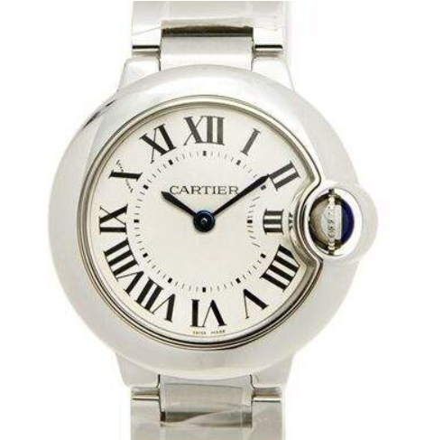 蓝气球系列=Ballon Bleu蓝气球腕表如其名字一样 ,是卡地亚腕表中的经典,超大凸圆蓝宝石制成诱人的表冠,似圆非圆的流线型表壳别出新意且引领潮流。这款卡地亚蓝气球腕表表壳为银白精钢,表径28.6毫米,内部搭载型号为Cal.057的石英机芯,表带为精钢链式构造。透过蓝宝石水晶玻璃的表镜,镀银扭索雕纹表盘搭配罗马数字时标,剑形蓝钢指针,点滴转动出时间的轨迹。夏天容易清洗,不会受汗的侵扰!