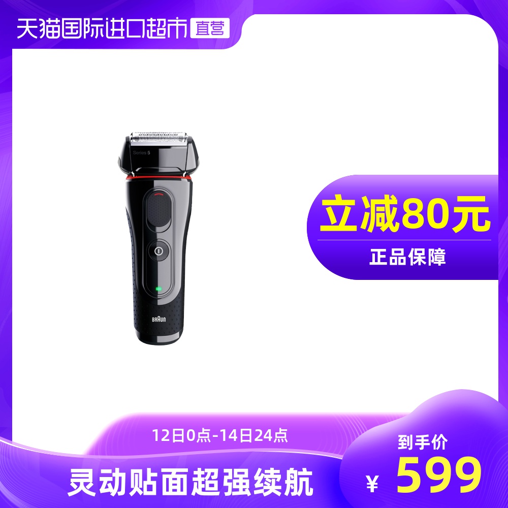 博朗进口剃须刀电动充电式5030s全身水洗胡须刀 往复式男士刮胡刀