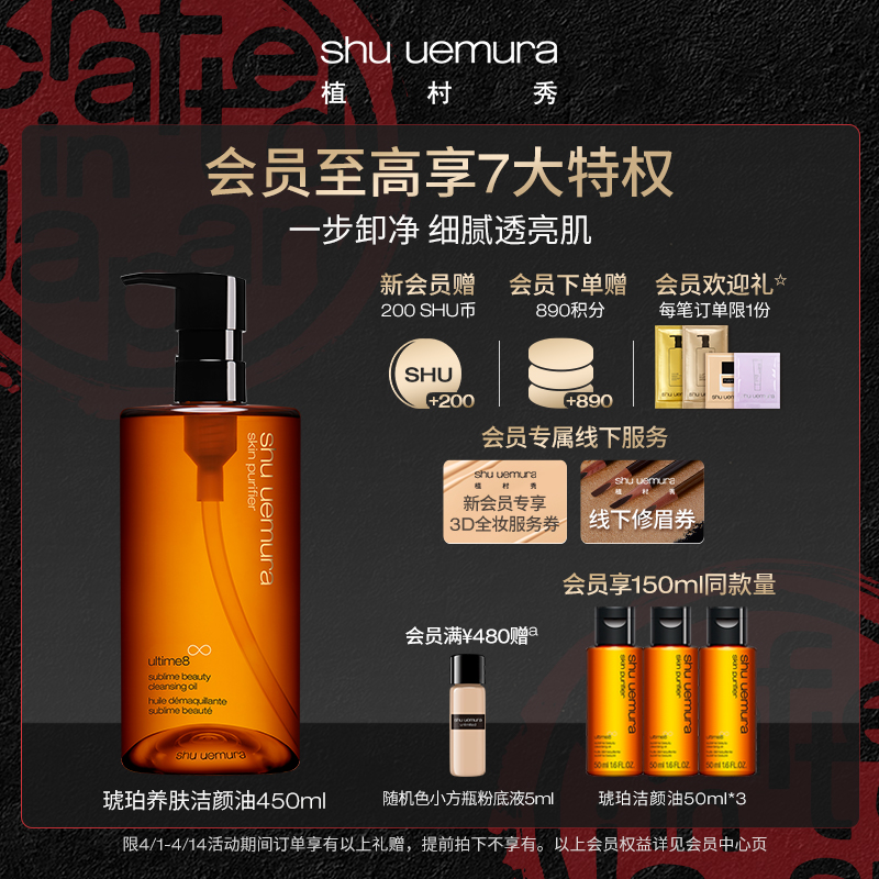 王一博力荐植村秀明星琥珀臻萃洁颜油深层清洁卸妆油