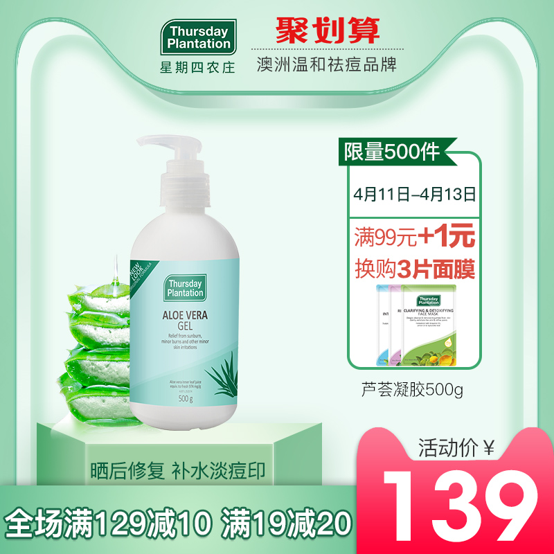 星期四农庄 进口芦荟凝胶补水保湿正品500g淡化痘大容量涂全身